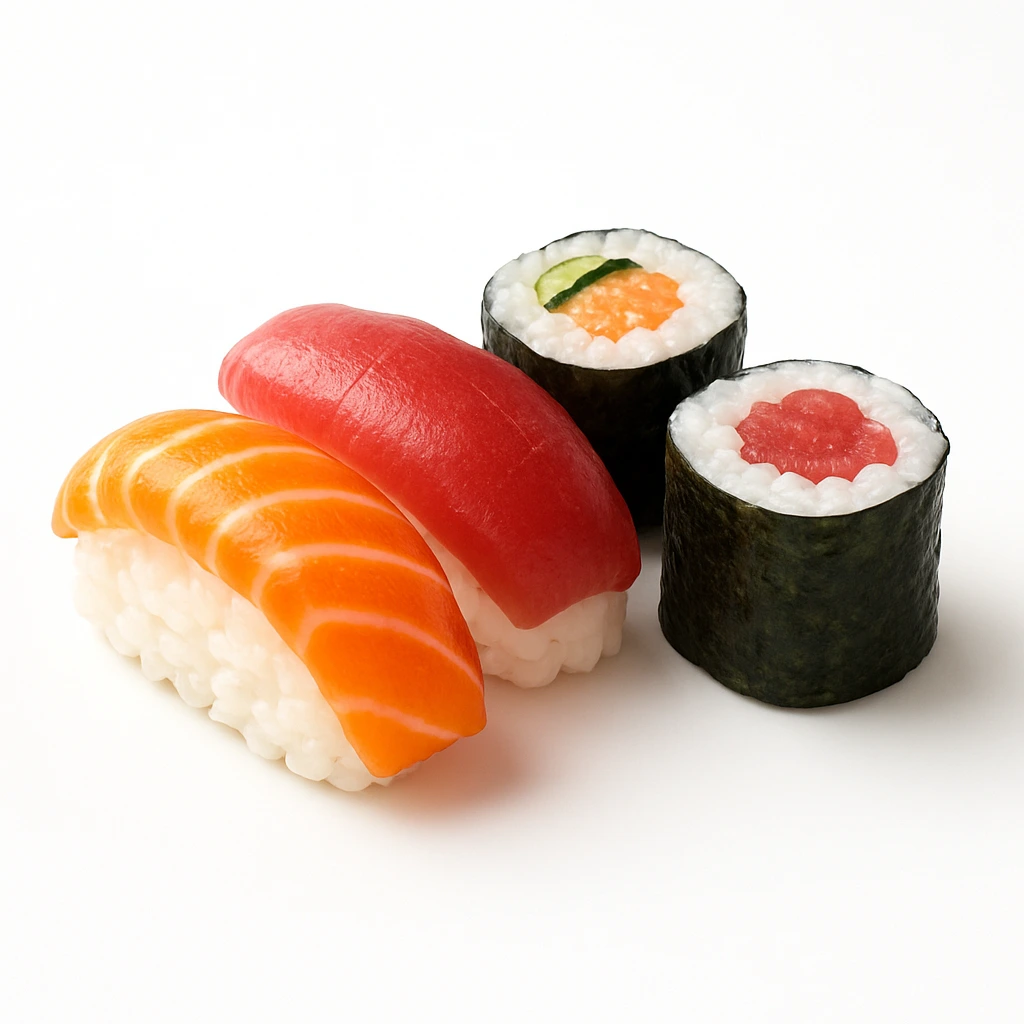 California roll topped with tuna, salmon, yellowtail, avocado
